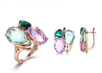 Кольцо и серьги "Цветы" от бренда HUADIE окунет Вас в прекрасный солнечный сад наполненный яркими, ароматными цветами.