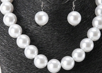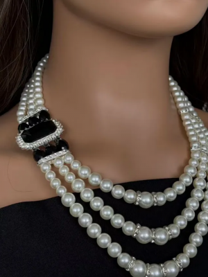 Элегантный комплект бижутерии из искусственного белого жемчуга и крупных кристаллов - отличный выбор для особых моментов.