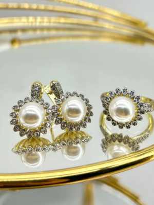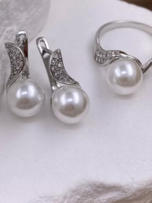 Элегантный комплект украшений с жемчугом кольцо и серьги женские .