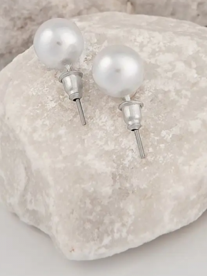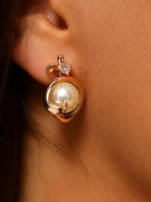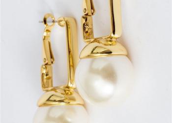 Серьги с искусственным жемчугом на стальной и золотой основе.