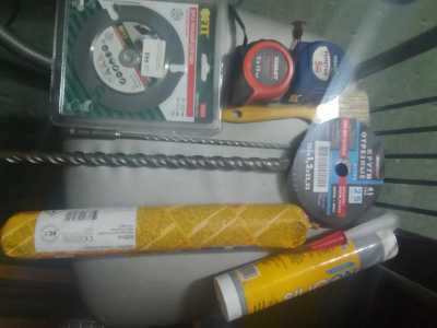 9 отрезных дисков 125,диск пильный по дереву, бур по бетону 18, герметик белый антигрибковый влагостойкий, герметик...