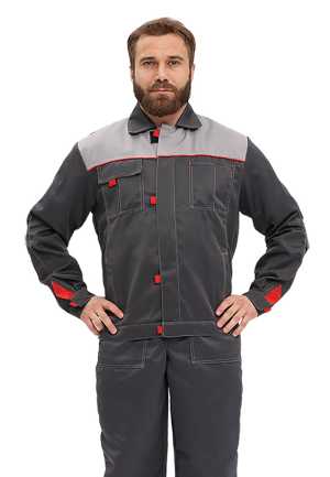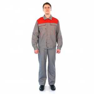Костюм БлокПОСТ "Профессионал-2" (куртка+полукомбинезон), (серый+красный) Рабочий костюм подойдет строителям, разнорабочим...