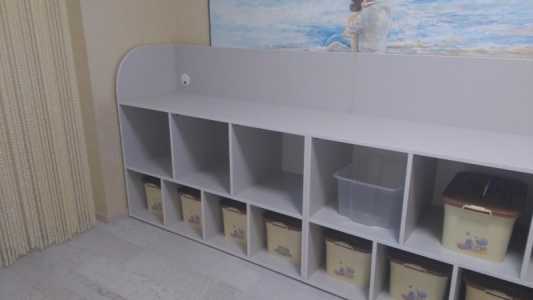 Стеллаж состоит из двух половин. Общая длина - 2 м 50 см, глубина - 48 см, высота - 102 см.