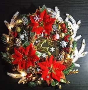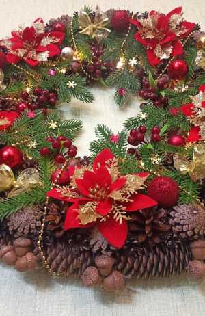 Венок новогодний, рождественский, йольский - для больших помещений, на дверь, стену, камин, лестницу. Диаметр 60 +-2см.