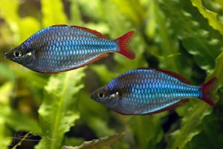 Радужница Неоновая (Melanotaenia Praecox), Оптимальные размеры аквариума для стайки из 6–8 рыбок начинаются от 60 литров.