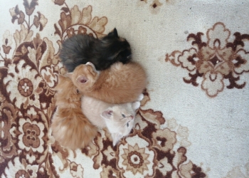 Катята приучены к лотку, весёлые, сами едят. Два рыжих, трехцветный и светлый.