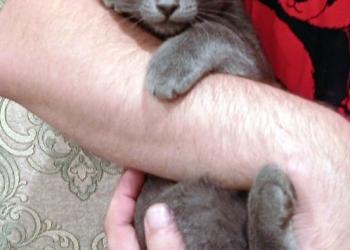 Отдам котят! все серые, одна полностью, вторая в темную полосочку, и один с белыми лапками и мордочкой.